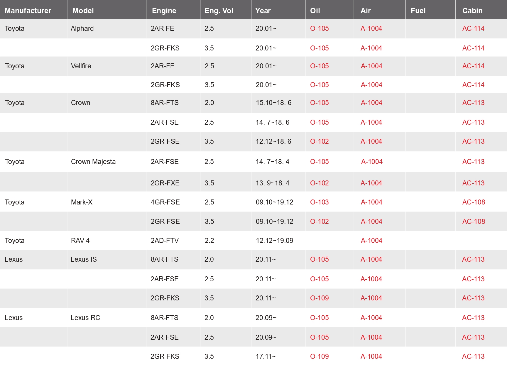 CROSS REFERENCE / OEM NO.