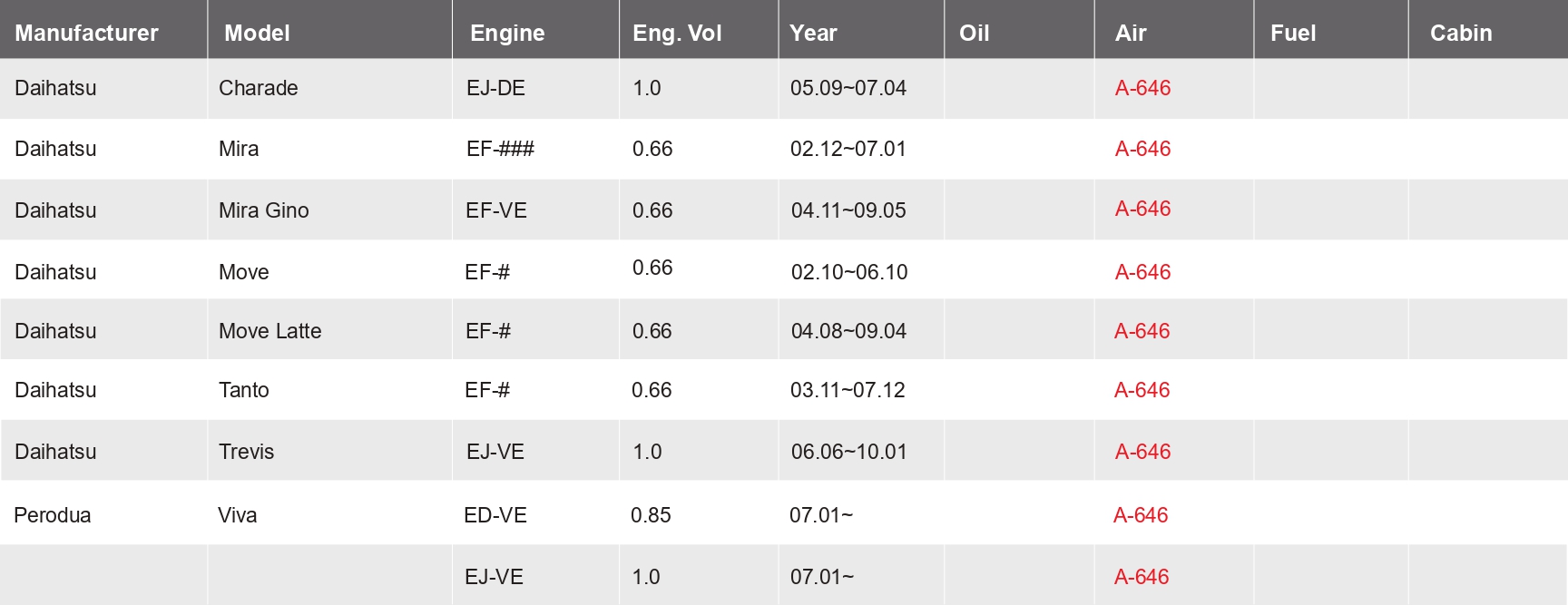 CROSS REFERENCE / OEM NO.