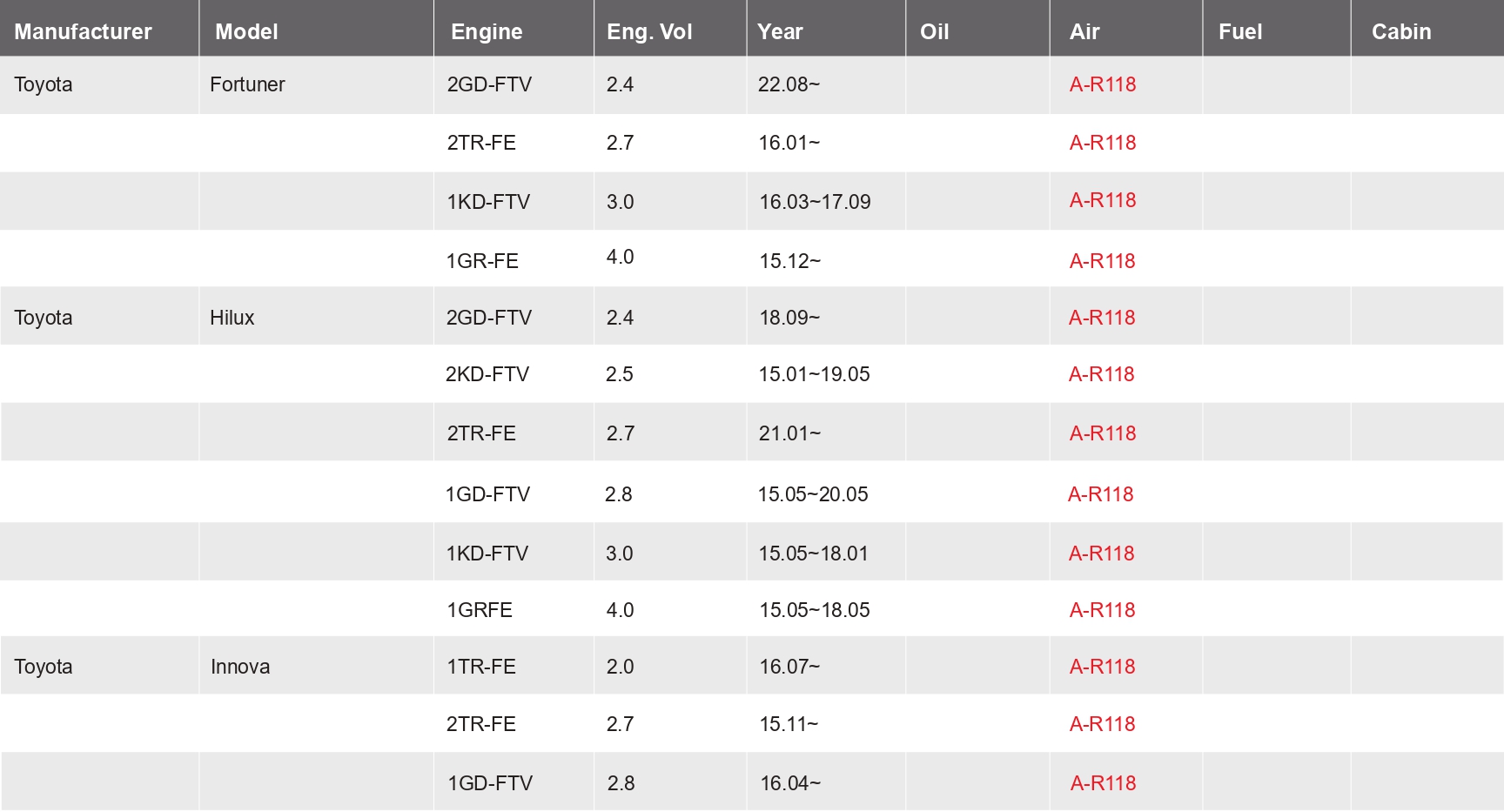 16546-A000P 17801-0L040 17801-0L050 A-R118 AR118 16546A000P 178010L040 178010L050