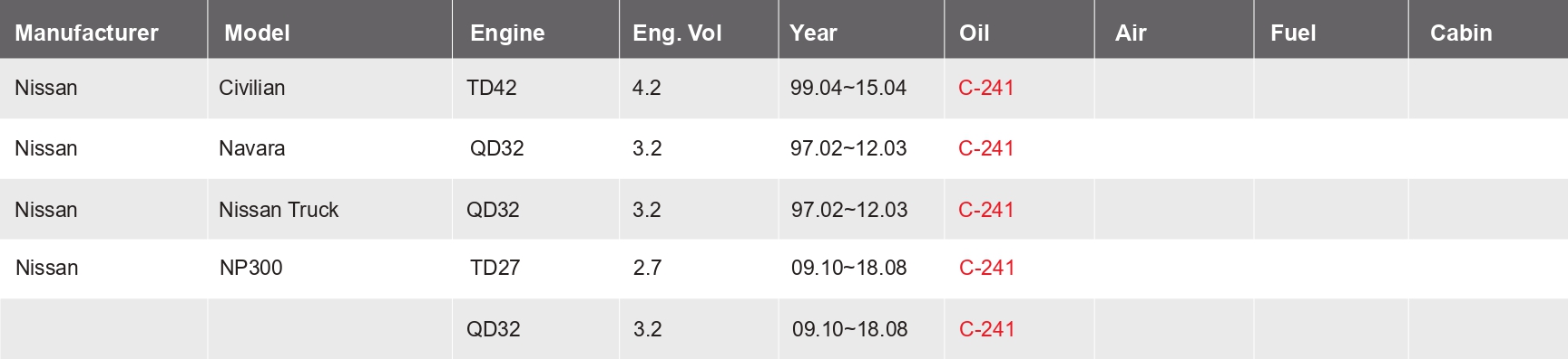 NISSAN | 15208‐65010 |