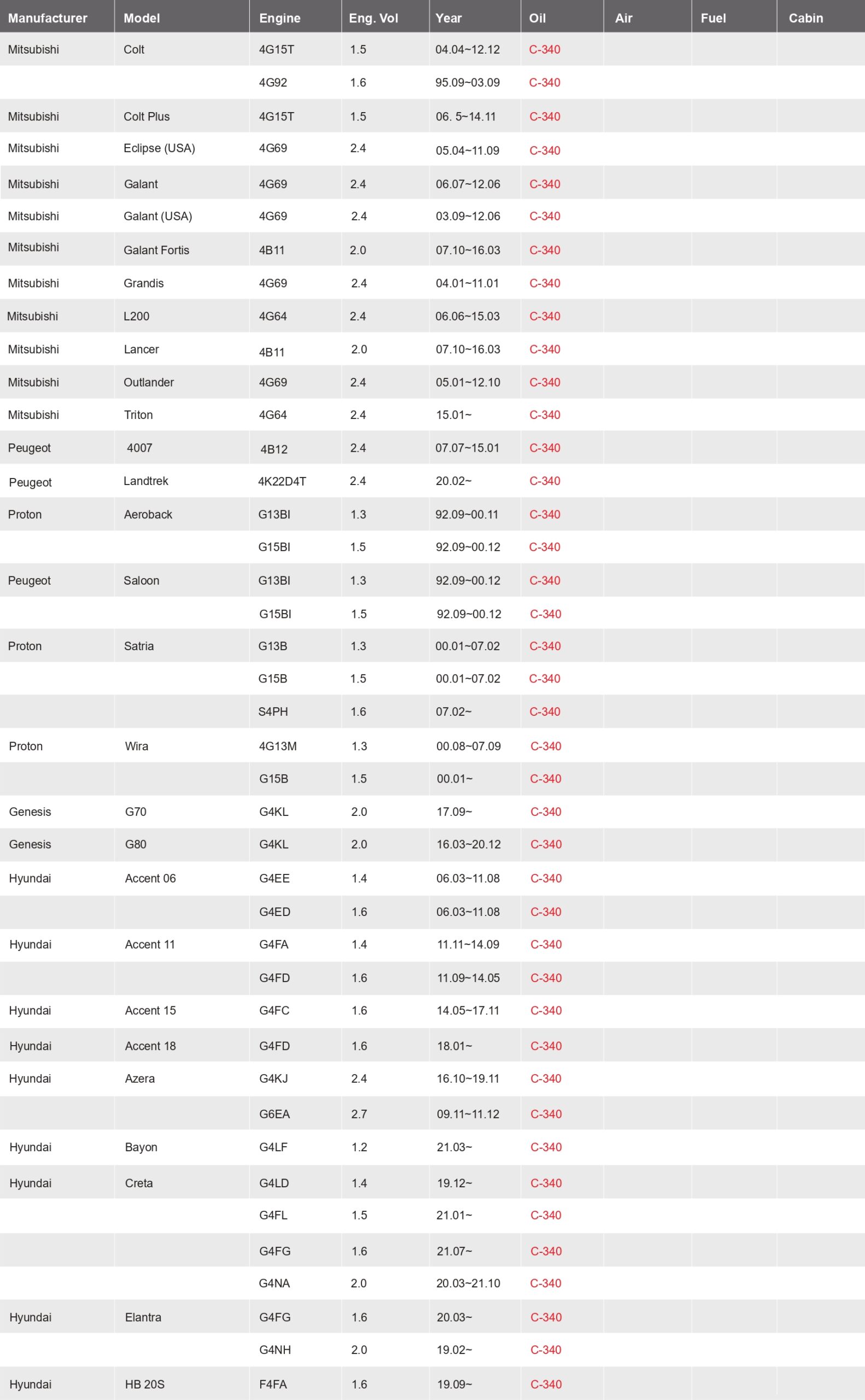 CROSS REFERENCE / OEM NO.